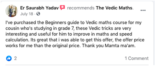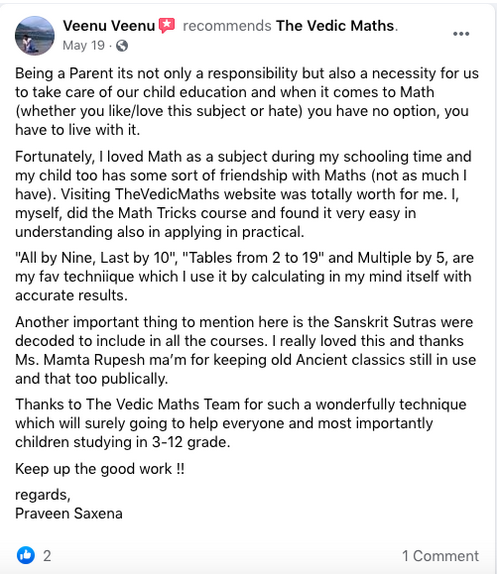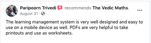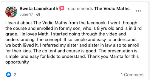 Vedic Maths is a unique education system that focuses on the development of memory power, reasoning, concentration, speed, and accuracy. As a Teacher, I have seen improvements in the memory power of my students and their speed and accuracy in their calculations.